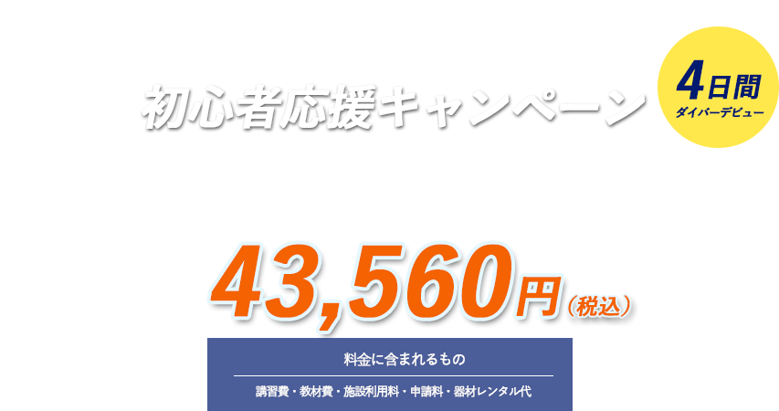 それは、誰でも確実にマスターできるよう、お一人お一人に合わせた独自のプログラムを組んでいるからです。そのため、初心者でも通常の2倍以上の速さでダイビングスキルがマスターすることができます。